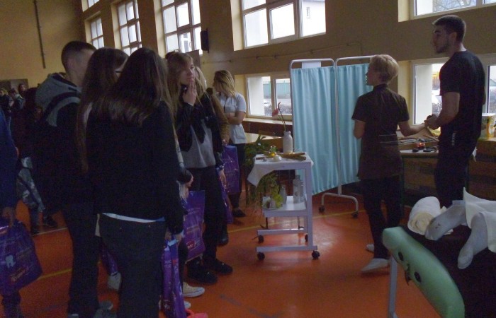 Dnia 27 marca obchodziliśmy II Wejherowski Dzień Promocji Zdrowego Stylu Życia. Cały dzień przyjmowaliśmy w szkole uczniów szkół wejherowskich zachęcając ich do przemyślenia prowadzonego stylu życia. O profilaktyce mówiły panie z Sanepidu, o odpowiednim relaksie nauczyciele fizjoterapii, a o zdrowej diecie pani dietetyk. Festyn zdrowotny odwiedziły też dzieci, które zachęcaliśmy do jedzenia owoców i warzyw, kontroli stomatologicznych czy zabaw rekreacyjno-wypoczynkowych. Spotkaliśmy się też z paniami z Uniwersytetu III wieku, które swoją zdrową postawą mogą być przykładem dla młodzieży.
